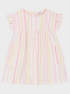 Das gestreifte Kleid aus gewebter Baumwolle hat vorne praktische Einschubtaschen. Außerdem besticht es mit einem entzückenden Rüschenbesatz an den Schultern und einer Unterteilung auf Brusthöhe, die unten für einen besonders weiten Schnitt sorgt. Das Kleid wird am Rücken geknöpft.